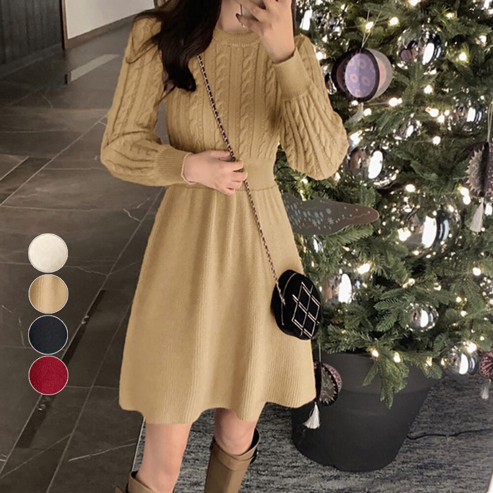 ケーブル編みがアクセントに映えるニットワンピース