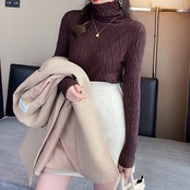 ジャカード編みと波模様が存在感を放つハイネックニットトップス