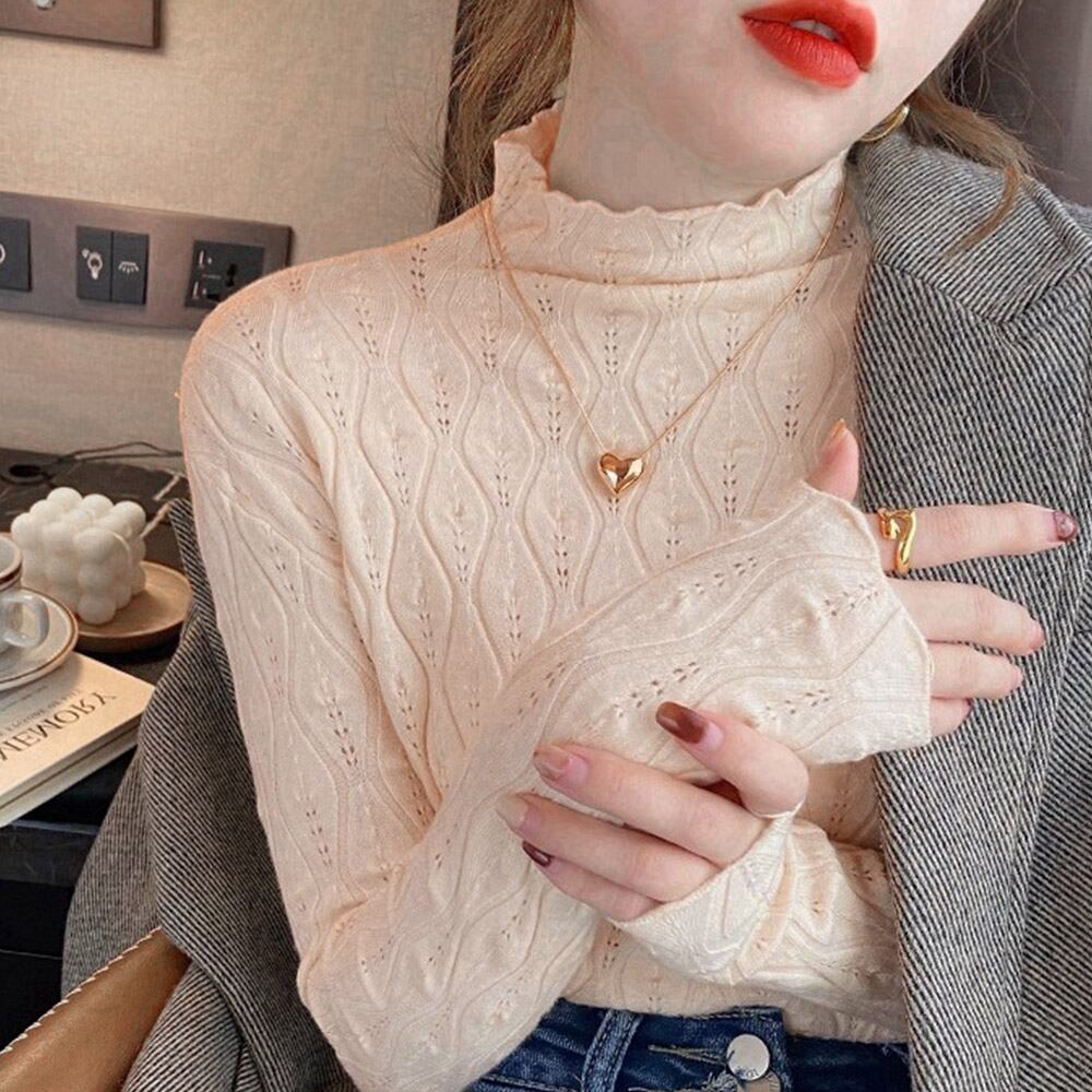 タートルネック ニットインナー ジャガード 長袖 無地 ニットソー ベーシック きれいめニット オフィスカジュアル