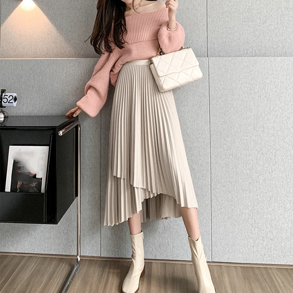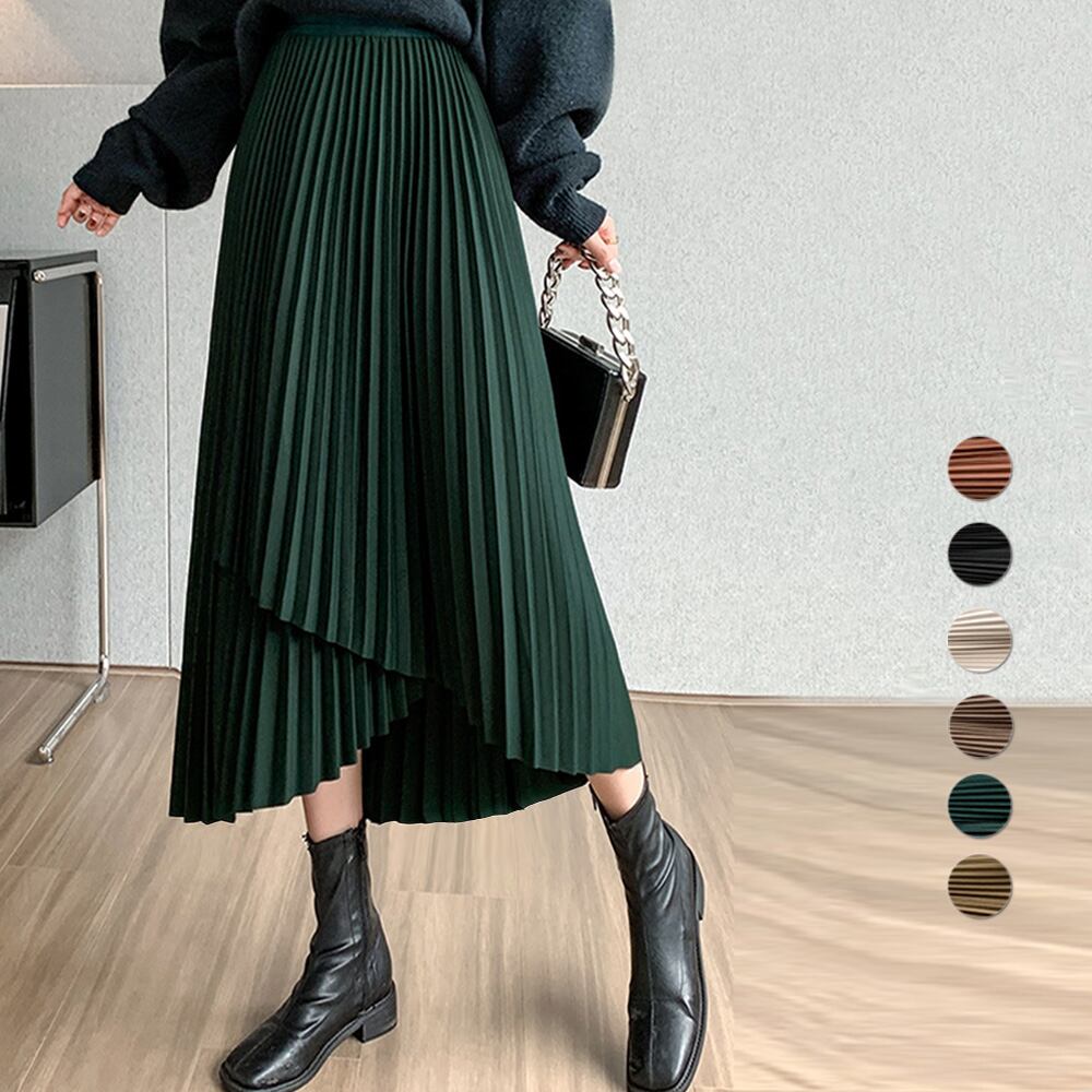 不規則なシルエットがモードな着こなしへ導くプリーツスカート