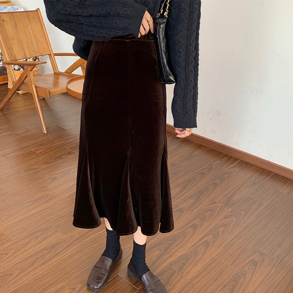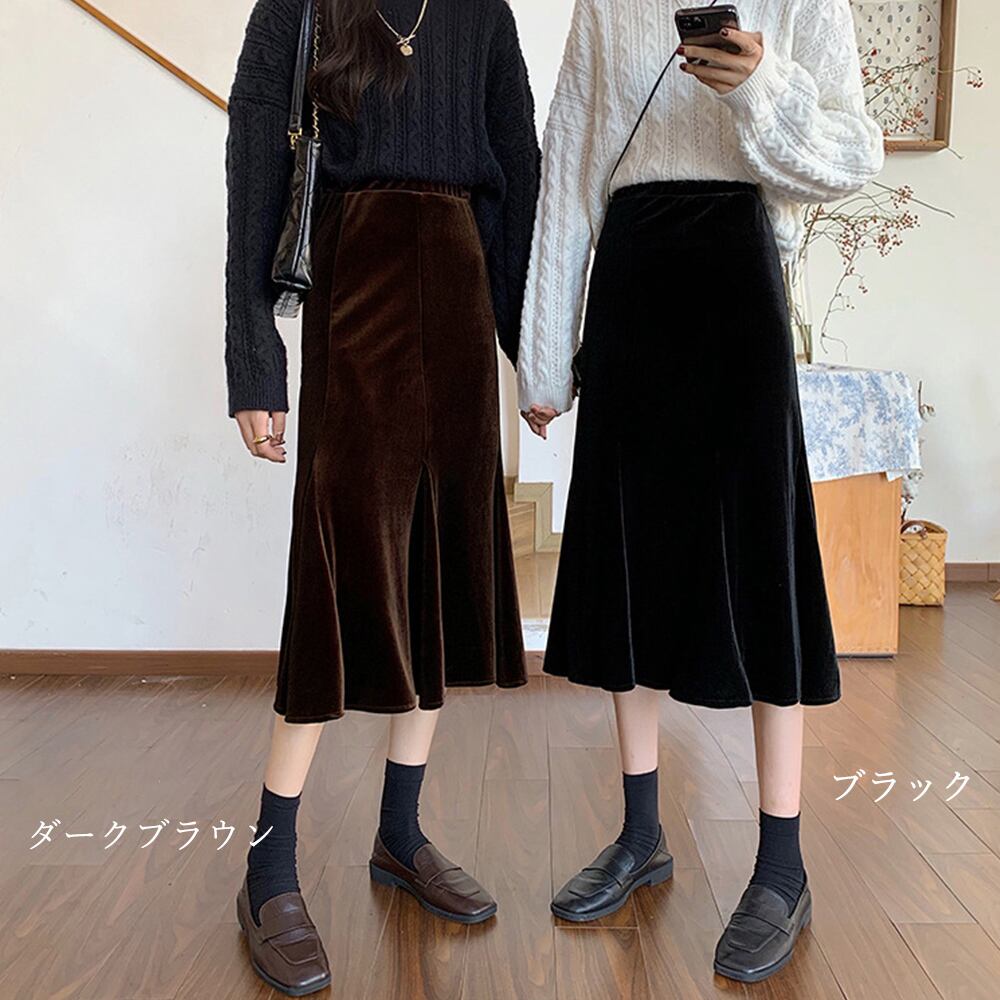 レディース 秋冬 フレアスカート黒 ハイウエスト 美ライン人魚タイトスカート 大人セクシー 上品 ロングスカートミモレ丈