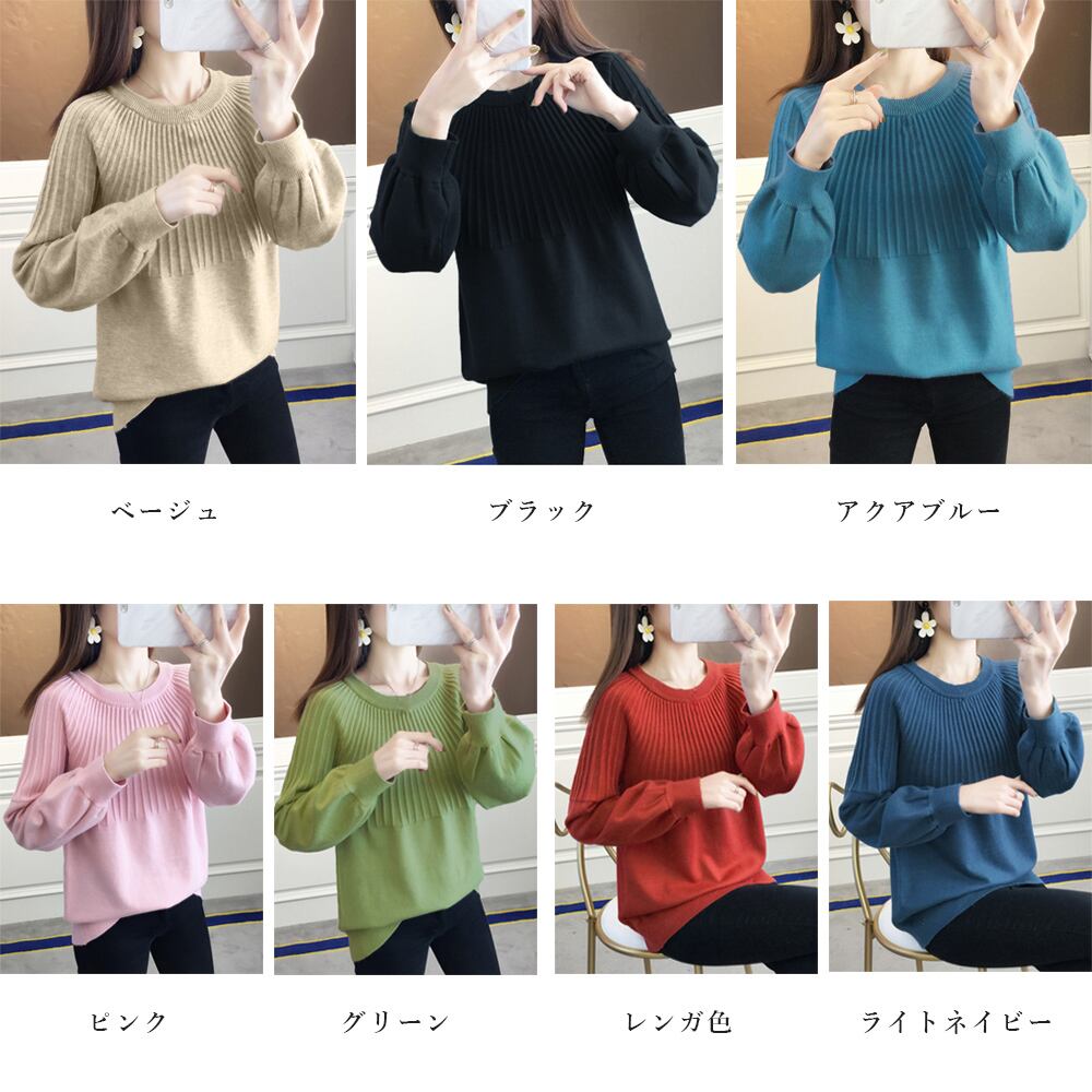 ニットプルオーバー 無地 きれいめ ニットセーター カジュアル 柔らかい ニットソー ラウンドネック ニットウエア 春秋