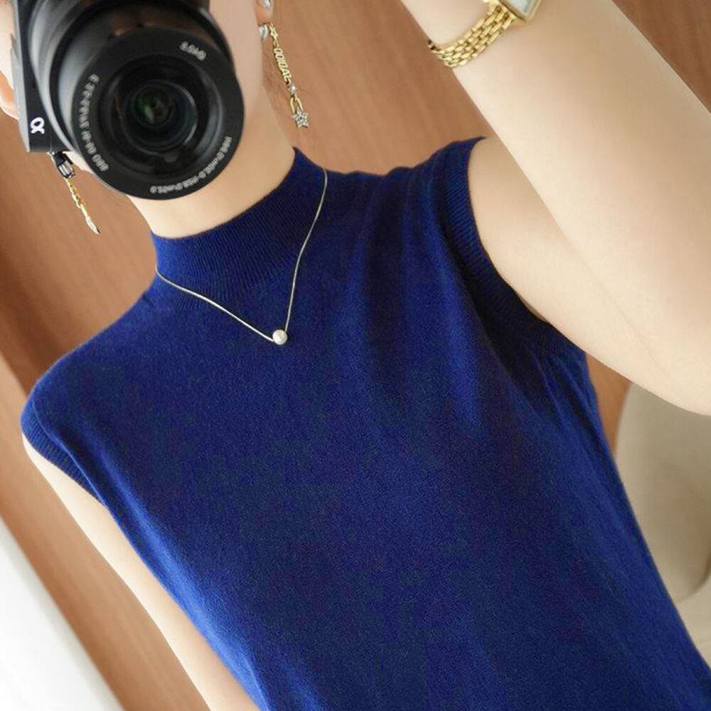 プチハイネックニット レディース ノースリーブ ニットトップス オフィスカジュアル 華奢見え インナーニットソー 春秋夏