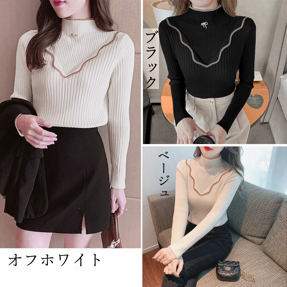 ニットソー レディース トップス プチハイネック セーター 着回し ニットプルオーバー 大人可愛い リブニットインナー
