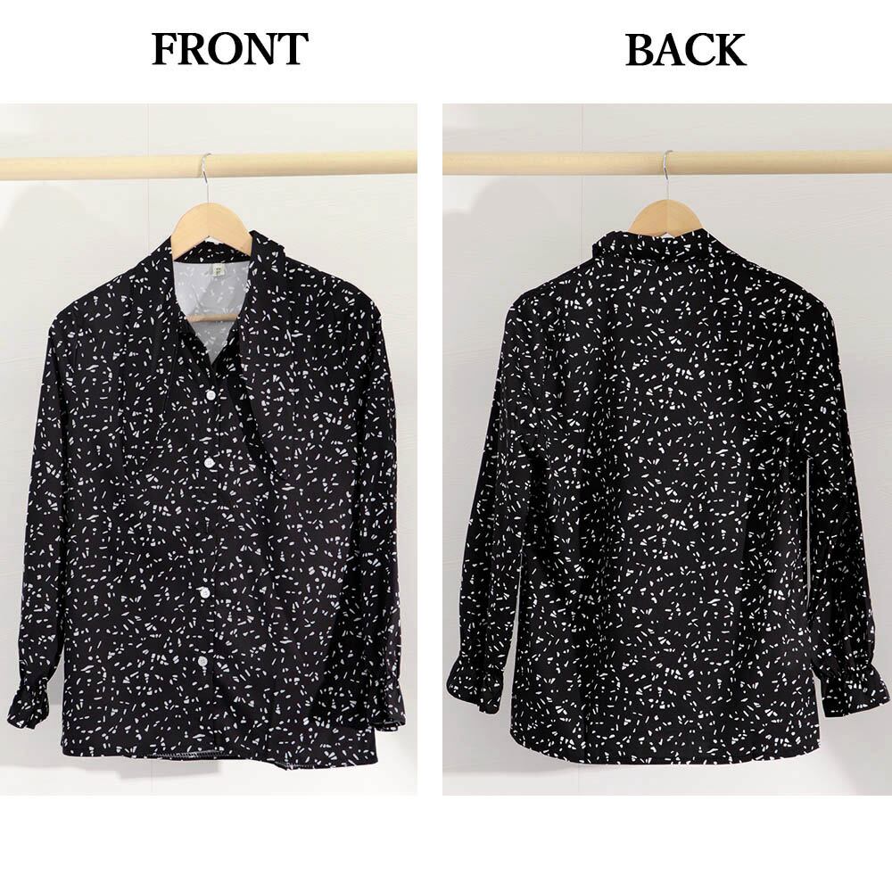 上品 オフィスブラウス 大人 長袖 シャツ 春秋 新作 プリント ゆったり 袖パフスリーブ フリル リボンタイブラウス