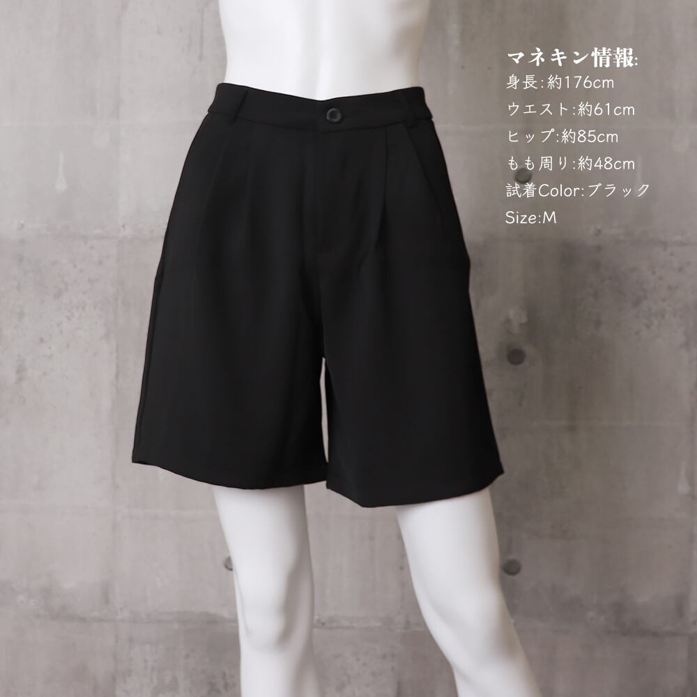 ショートパンツ ミディアム ストレート スラックス ワイドパンツ ハイウェスト 短パン 通勤 オフィス 大人