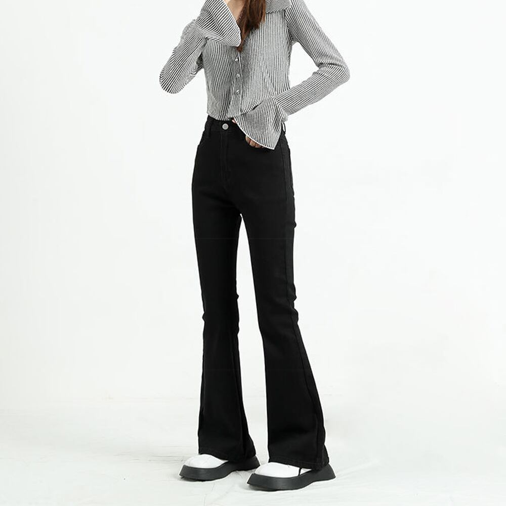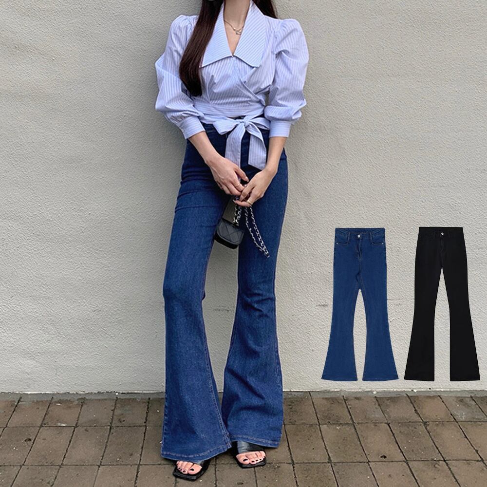 美脚フレアパンツ 着回しデニムパンツ 小尻見せボトムス
