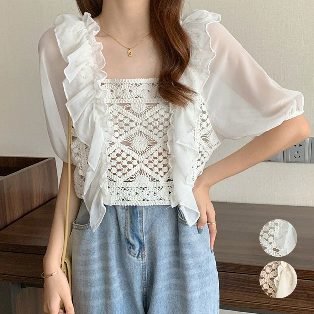 レディーストップス 春夏コーデ 甘系 ショート トレンド 可愛い おしゃれ きれいめ カットソー 透け感 セクシー