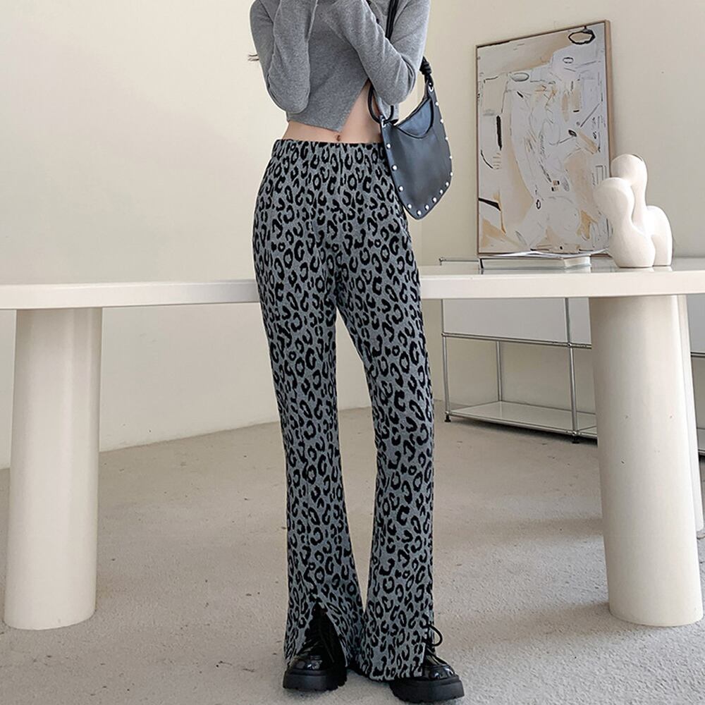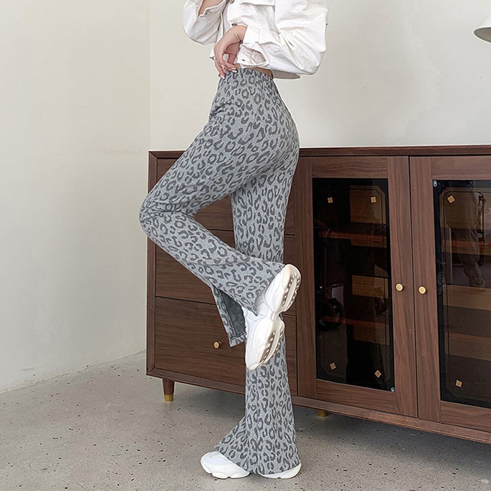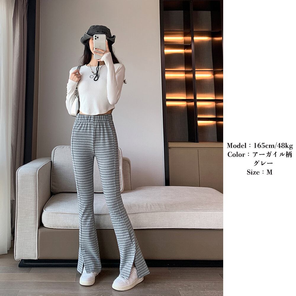 レディースボトムス ヒョウ柄 アーガイル柄 ハイウエスト ロングパンツ ウエストゴム おしゃれ 脚長 厚手ダイヤ柄パンツ