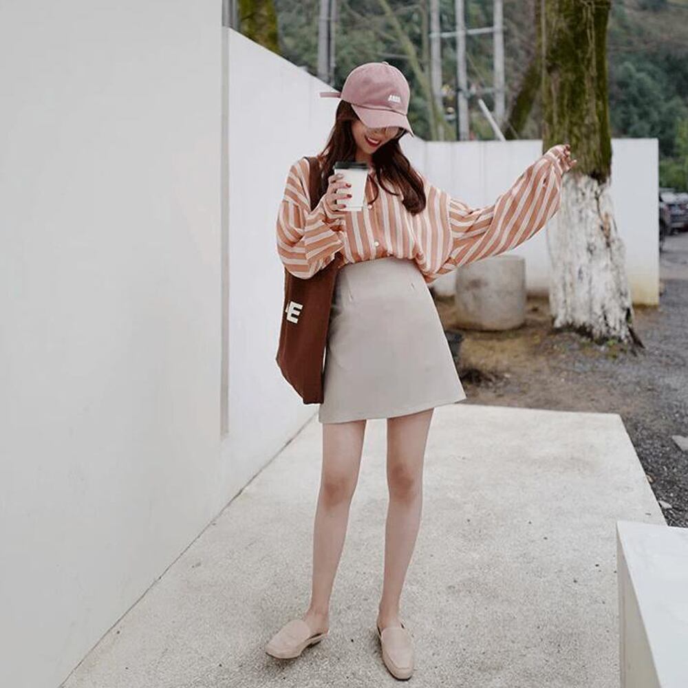おしゃれ ストライプ ルーズシャツ Vネック オーバーサイズシャツ 体型カバー 春秋夏トップス ゆったり シャツブラウス