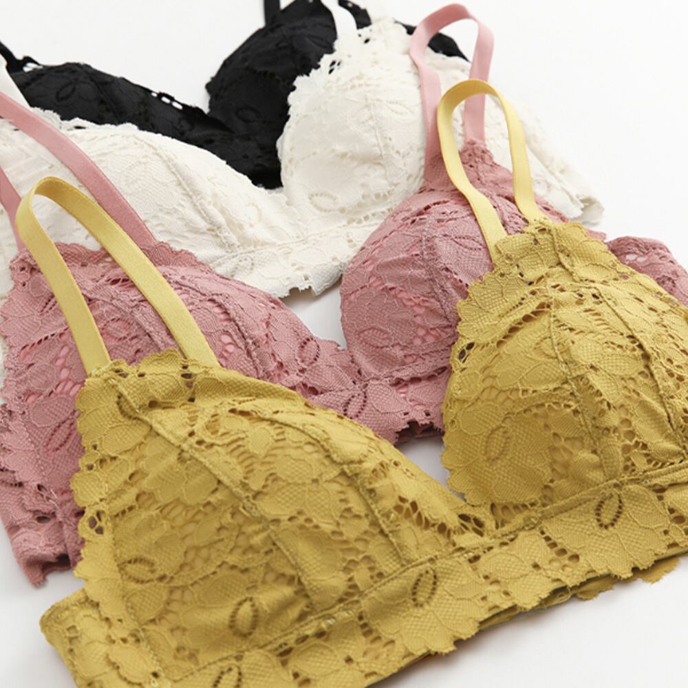可愛い 総レース ノンワイヤー ブラジャー ショーツ 2点セット 谷間 ワイヤレス ブラショーツ 上下セット脇スッキリ
