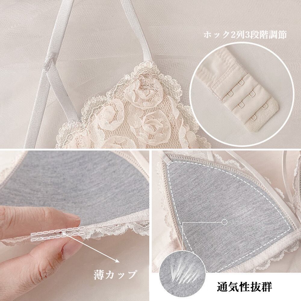 可愛い レースブラジャー ショーツ 上下セット ノンワイヤー 細ストラップ ブラセット美胸谷間 プッシュアップブラ盛れる