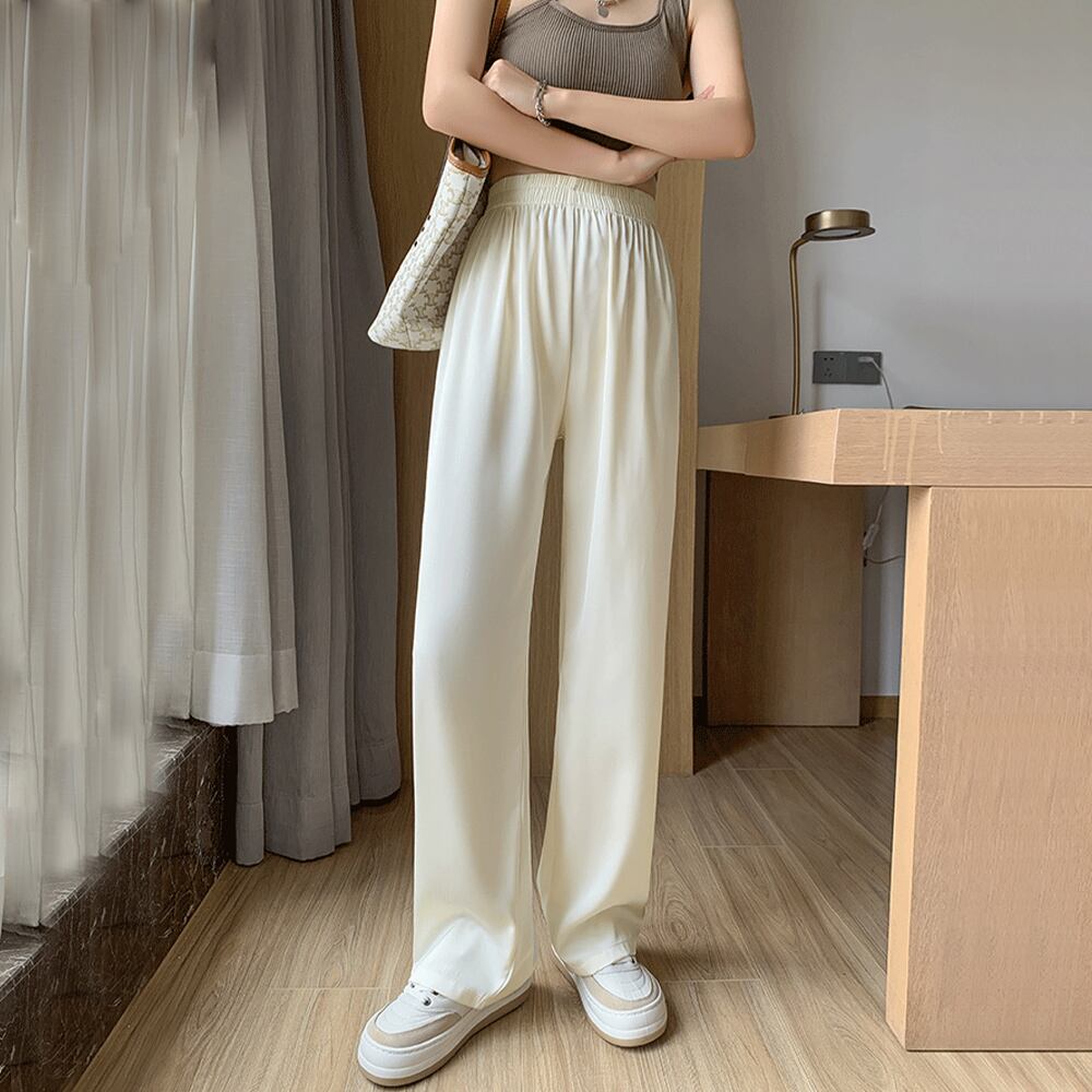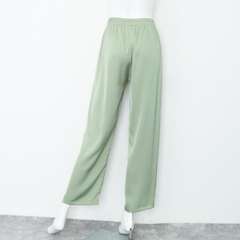 微光沢があり、ドレープ感のある滑らかな素材を使用したセミワイドパンツ。