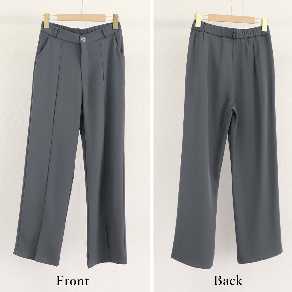 フロントスリットが施されており、美脚見せはもちろん、センタープレスによって縦のラインを強調することで、よりスタイリッシュに仕上がります