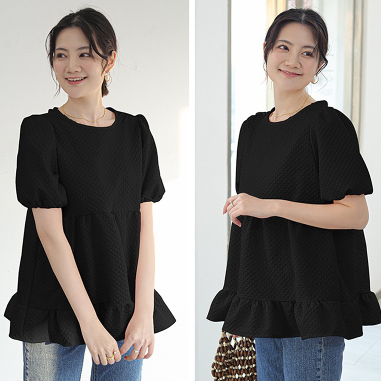 ふんわリとしたボリューム感で品のある女性らしい半袖ティアードトップス