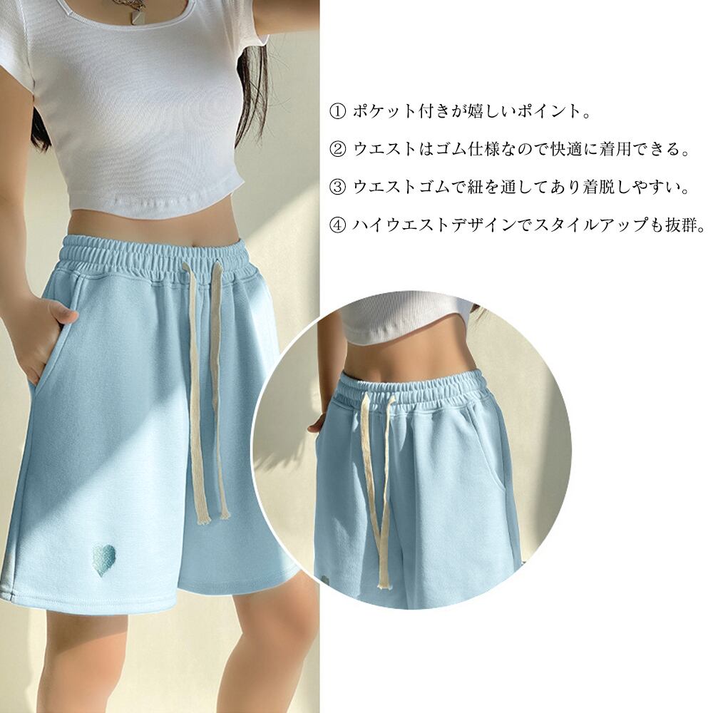 レディースボトムス ハート刺しゅう ショーパン ウエストゴム 美脚 可愛い 体型カバー スポーツ ルームウエア 夏