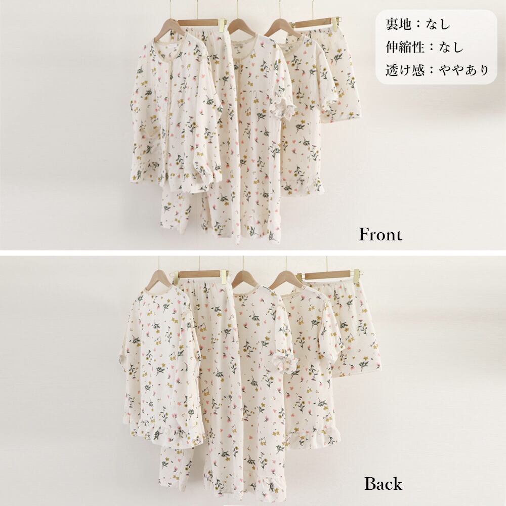 ロングガウンとして羽織ることもできるワンピースtype、可愛い半袖トップス&ショートパンツtype、上品な長袖トップス&ロングパンツtypeの3種類をご用意