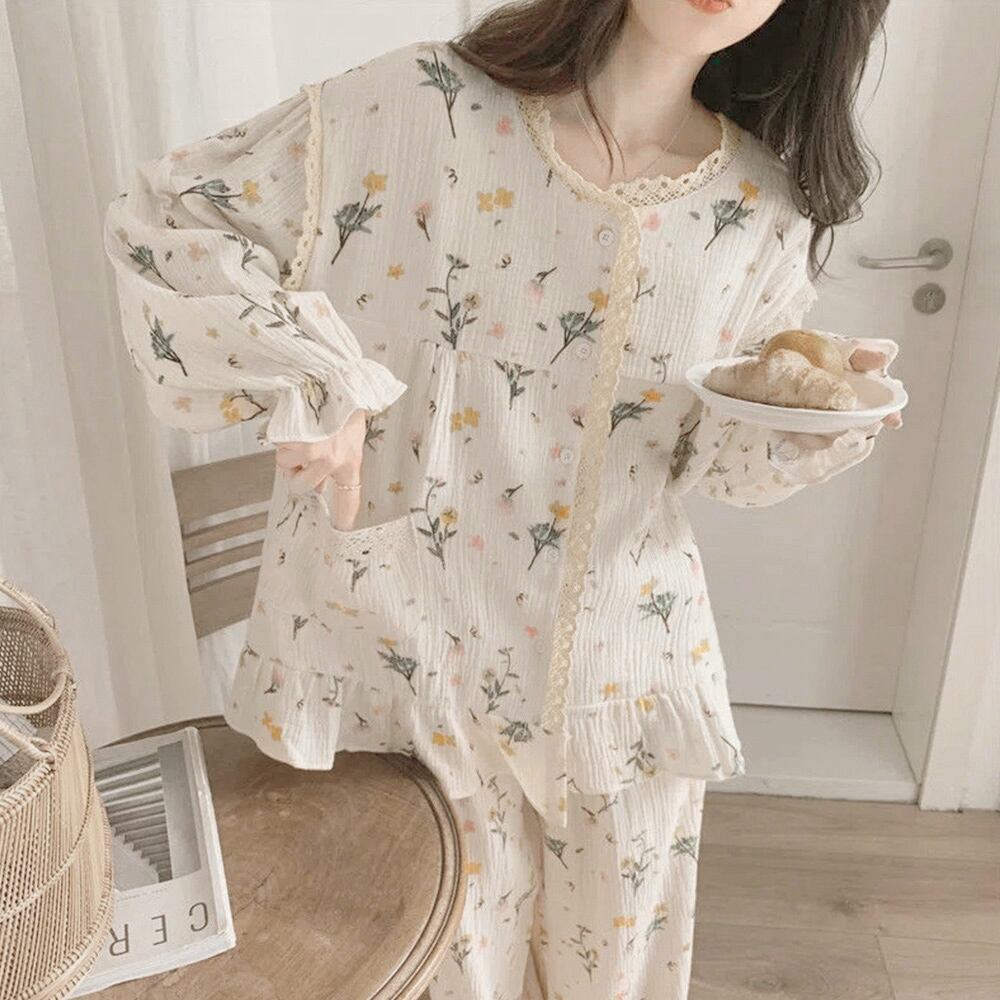 淡い色合いとボタニカル柄で爽やかな雰囲気を醸し出し、汗ばむ季節でも上質な睡眠作りに役立つフェミニンルームウェア