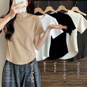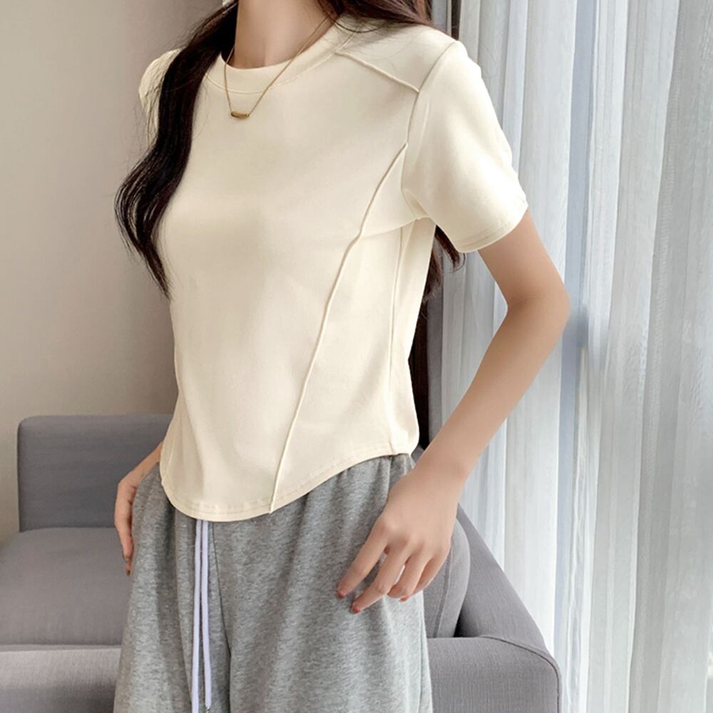 サマートップス春秋 丸首Tシャツ細見え プルオーバー着回し