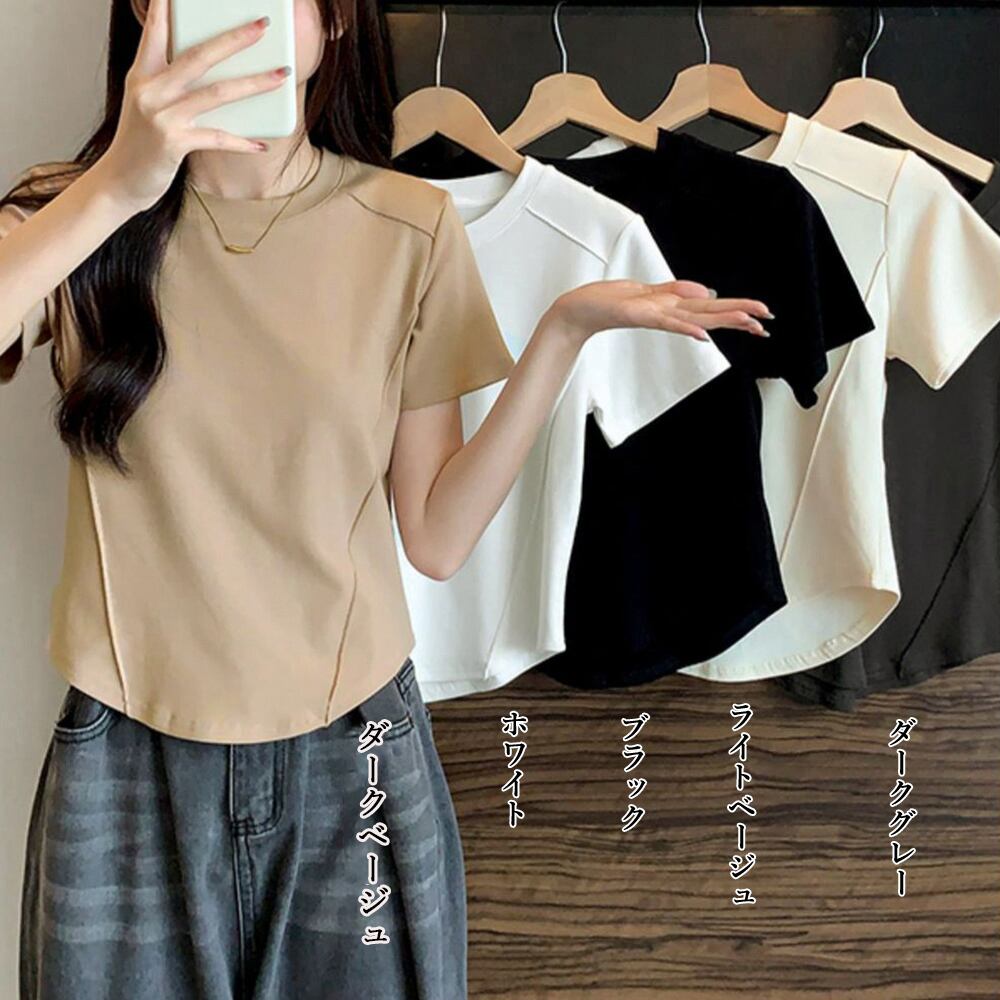 大人カジュアル 半袖カットソー ラウンドネック 夏トップス シンプル 夏服 オシャレ着やせ スリムフィットtシャツ