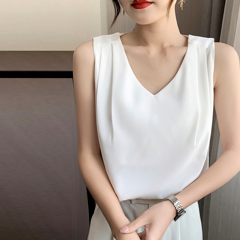 Vネック ゆったり ノースリーブトップス 涼しい 薄手 きれいめ ブラウス オフィスカジュアル 体型カバー 重ね着